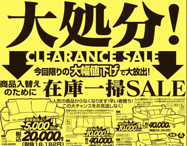 展示商品限りのお買い得な家具早い者勝ち!!